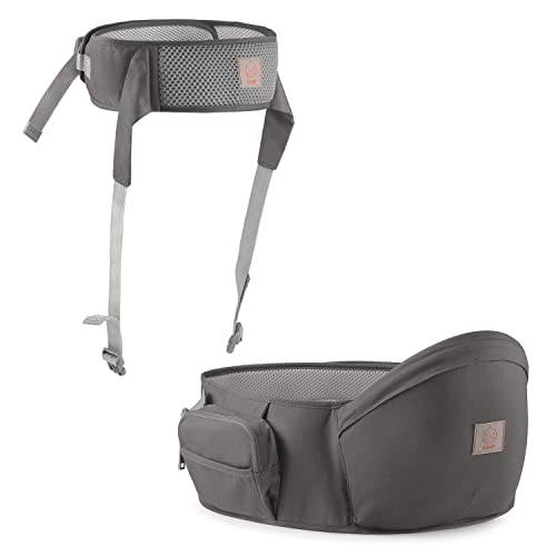 GAGAKU Taille Hocker Baby Hüftsitz mit Sicherheitsgurt Schutz für Kinder 0-36 Monate – Dunkelgrau