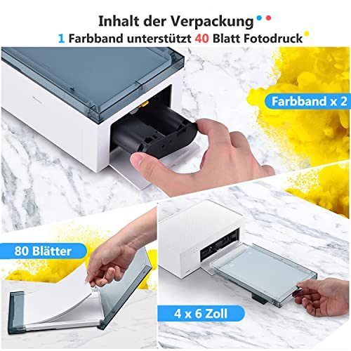 Liene – Packung mit 80 Blätter Fotopapier & 2 Farbband, 4″x 6″ Fotopapier für Liene Fotodrucker, 100 x 148 mm Fotopapier für Thermosublimationsdruck, Wasser/Oxidationsschutz, für Album/Rahmung/Collage